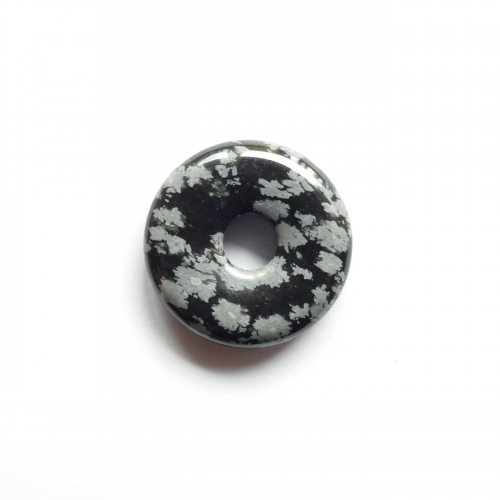 Bei diesem Artikel handelt es sich um einen Donut aus Schneeflockenobsidian mit 20 mm Durchmesser. Da es sich bei den verarbeiteten Steinen um ein Naturprodukt handelt können Farben, Form und Musterung vom Beispielbild abweichen.