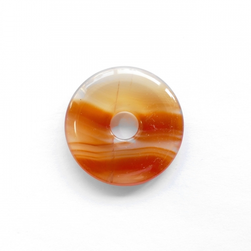 Bei diesem Artikel handelt es sich um einen Donut aus Karneol mit 30 mm Durchmesser. Da es sich bei den verarbeiteten Steinen um ein Naturprodukt handelt können Farben, Form und Musterung vom Beispielbild abweichen.