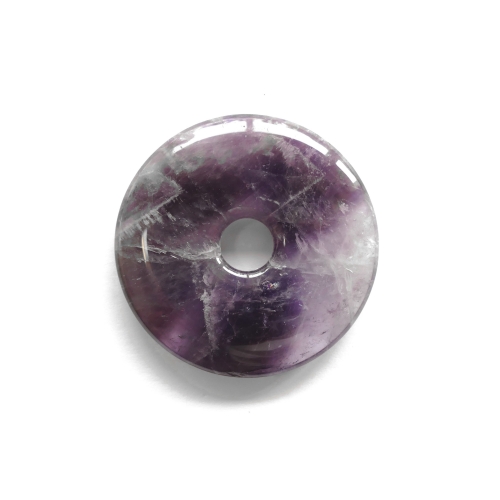 Bei diesem Artikel handelt es sich um einen Donut aus Amethyst mit 40 mm Durchmesser. Da es sich bei den verarbeiteten Steinen um ein Naturprodukt handelt können Farben, Form und Musterung vom Beispielbild abweichen.