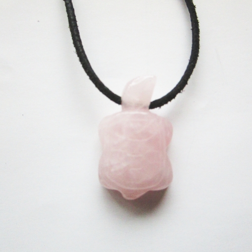 Bei diesem Artikel handelt es sich um eine Steingravur aus Rosenquarz in Schildkrötenform. Die Größe beträgt 25 mm mit einer 2.5 mm Bohrung. Im Lieferumfang weiters enthalten ist ein 42 cm langes schwarzes Ziegenlederband mit Verschluss in der Stärke 15 mm. Da es sich bei den verarbeiteten Steinen um ein Naturprodukt handelt können Farben, Form und Musterung vom Beispielbild abweichen. Verbraucherhinweis: Bitte bedenken Sie, dass alle beschriebenen Wirkungen wissenschaftlich nicht belegbar sind und daher keinen Besuch beim Arzt ersetzen.