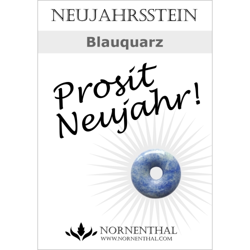 Hochwertiger Nornenthal Silvester Glücksbringer. Edelstein in Donutform in der Größe 20 mm geschützt im Druckverschlussbeutel. Inklusive Möglichkeit zur Überbringung persönlicher Wünsche auf der Innenseite. So wird es möglich mit Edelsteinen auch zu Silvester individuelle Freude zu bereiten. Der Kreis als Symbol für Vollkommenheit und Unendlichkeit soll seinen Träger an die Wiederkehr des Jahres erinnern und ihm dabei helfen in seinen Vorsätzen zu bestärken.