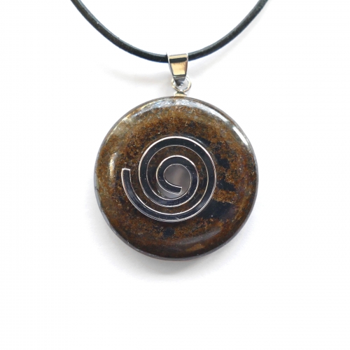 Bei diesem Artikel handelt es sich um einen Donut mit 30 mm Durchmesser. Im Lieferumfang weiters enthalten sind ein versilberter Donuthalter in Spiralform für 30 mm Donuts und ein schwarzes Lederband. Das Lederband ist aus Ziegenleder, 42 cm lang und der Verschluss ist in der Stärke 15 mm. Da es sich bei den verarbeiteten Steinen um ein Naturprodukt handelt können Farben, Form und Musterung vom Beispielbild abweichen. Verbraucherhinweis: Bitte bedenken Sie, dass alle beschriebenen Wirkungen wissenschaftlich nicht belegbar sind und daher keinen Besuch beim Arzt ersetzen.