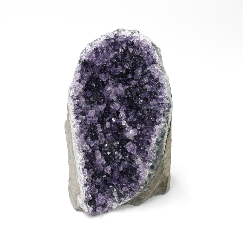 Amethyst besitzt eine reinigende, entgiftende und desinfizierende Wirkung. In seiner Geschichte wurde er gerne gegen Hautausschläge, einfache Hautkrankheiten und gegen Trunkenheit eingesetzt. Auf geistiger Ebene stärkt Amethyst die Konzentration und Denkfähigkeit und hilft bei Denkblockaden, Hemmungen, Aufstauungen, Grübelzwängen und schlechten Träumen.