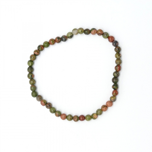 Bei dem folgenden Artikel handelt es sich um ein Gummiarmband mit Echtsteinen in Universalgröße. Dafür verarbeitet wurden ~45 Stück 3-4 mm große Unakit Kugeln. Das Armband eignet sich hervorragend als Begleiter für jeden Tag, aber auch als kleines Geschenk für Stein- und Modefreunde. Da es sich bei den verarbeiteten Steinen um ein Naturprodukt handelt können Farben, Form und Musterung vom Beispielbild abweichen. Verbraucherhinweis: Bitte bedenken Sie, dass alle beschriebenen Wirkungen wissenschaftlich nicht belegbar sind und daher keinen Besuch beim Arzt ersetzen.