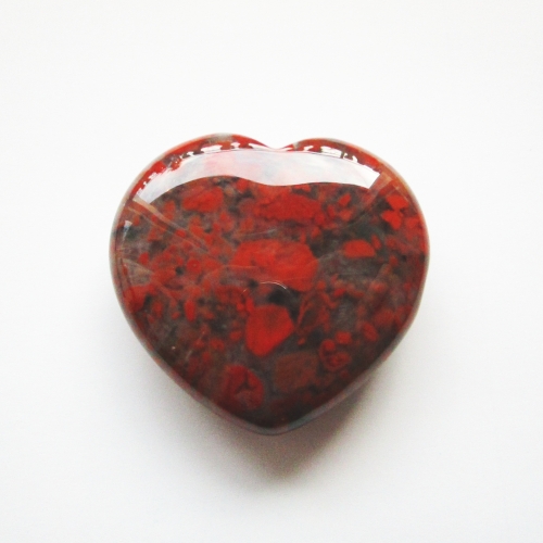 Brekzienjaspis besitzt eine blutstillende, hormon- und fruchtbarkeitfördernde Wirkung. In seiner Geschichte wurde er als Fruchtbarkeits- und Wahrsagestein genutzt. Er wirkt auf Herz Schilddrüse und die Geschlechtsorgane ein. Auf geistiger Ebene schenkt er Leidenschaft und Temprament.