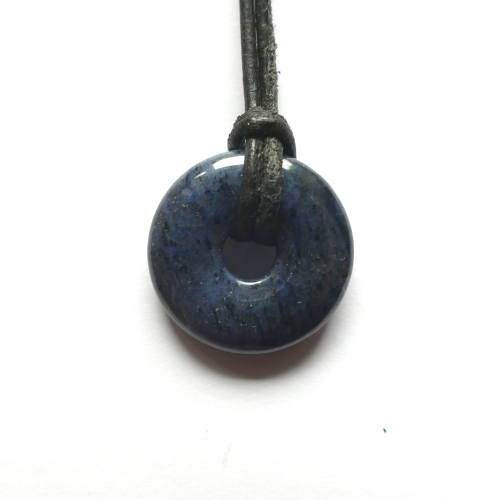 Bei diesem Artikel handelt es sich um einen Donut aus Dumortierit mit 20 mm Durchmesser. Im Lieferumfang weiters enthalten ist ein 42 cm langes schwarzes Ziegenlederband mit Verschluss in der Stärke 15 mm. Da es sich bei den verarbeiteten Steinen um ein Naturprodukt handelt können Farben, Form und Musterung vom Beispielbild abweichen. Verbraucherhinweis: Bitte bedenken Sie, dass alle beschriebenen Wirkungen wissenschaftlich nicht belegbar sind und daher keinen Besuch beim Arzt ersetzen.