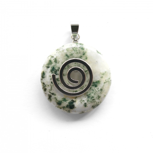 Bei diesem Artikel handelt es sich um einen Donut aus Baumachat mit 30 mm Durchmesser. Im Lieferumfang weiters enthalten ist ein versilberter Donuthalter in Spiralform passend für 30 mm Donuts. Dazu passende Silberkettchen und Lederbänder finden Sie in der Kategorie Edelsteinschmuck - Zubehör. Da es sich bei den verarbeiteten Steinen um ein Naturprodukt handelt können Farben, Form und Musterung vom Beispielbild abweichen. Verbraucherhinweis: Bitte bedenken Sie, dass alle beschriebenen Wirkungen wissenschaftlich nicht belegbar sind und daher keinen Besuch beim Arzt ersetzen.