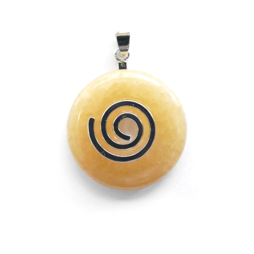 Bei diesem Artikel handelt es sich um einen Donut aus Orangencalzit mit 30 mm Durchmesser. Im Lieferumfang weiters enthalten ist ein versilberter Donuthalter in Spiralform passend für 30 mm Donuts. Dazu passende Silberkettchen und Lederbänder finden Sie in der Kategorie Edelsteinschmuck - Zubehör. Da es sich bei den verarbeiteten Steinen um ein Naturprodukt handelt können Farben, Form und Musterung vom Beispielbild abweichen. Verbraucherhinweis: Bitte bedenken Sie, dass alle beschriebenen Wirkungen wissenschaftlich nicht belegbar sind und daher keinen Besuch beim Arzt ersetzen.